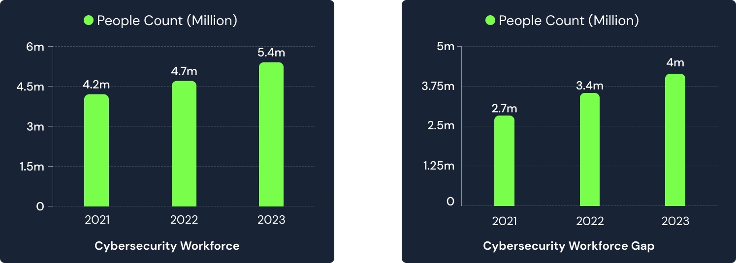 Below, you can see graphs showing employment numbers and workforce gaps in the cybersecurity sector.